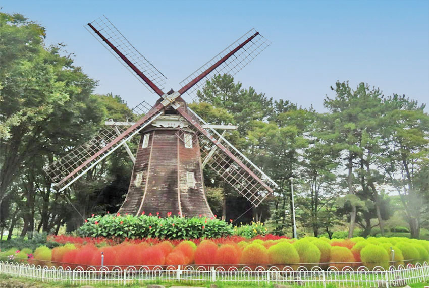 そんな鮮やかなコキアを背景に、風車とのコラボ写真を撮ってみましょう!