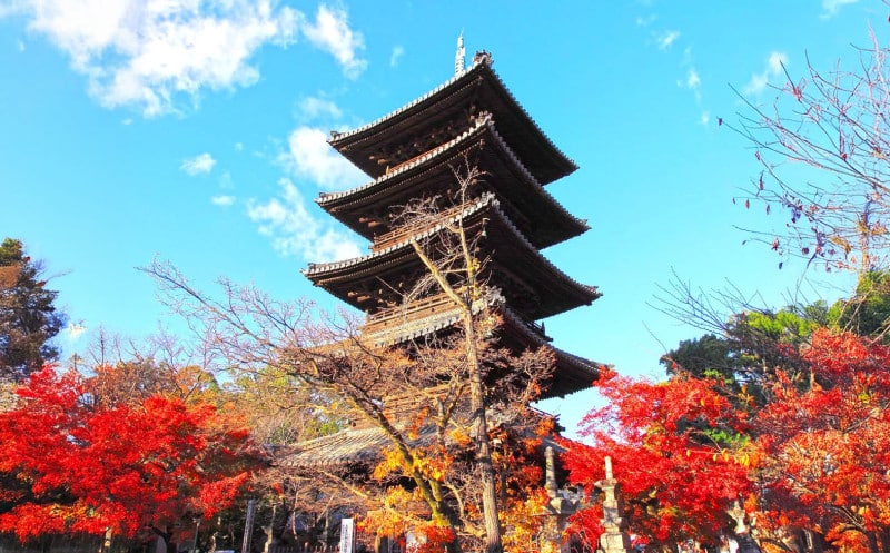 境内には「五重塔」もあり、紅葉と一緒に撮影すると映えます!